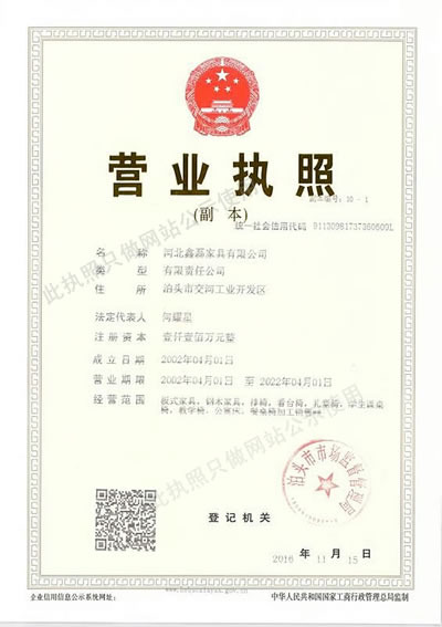 河北鑫磊家具有限公司(教學(xué)設(shè)備生產(chǎn)廠)位于中國鑄造之鄉(xiāng)——河北省泊頭市,是生產(chǎn)教學(xué)設(shè)備的綜合企業(yè),被列為教委定點生產(chǎn)廠家。公司主要生產(chǎn)上下床、中小學(xué)課桌椅、電腦桌椅、軟排椅、階梯排椅、辦公椅及課桌椅配件等教學(xué)設(shè)備家具。 公司為股份制企業(yè),歷經(jīng)十多年的艱苦奮斗,具有雄厚的人力資源。